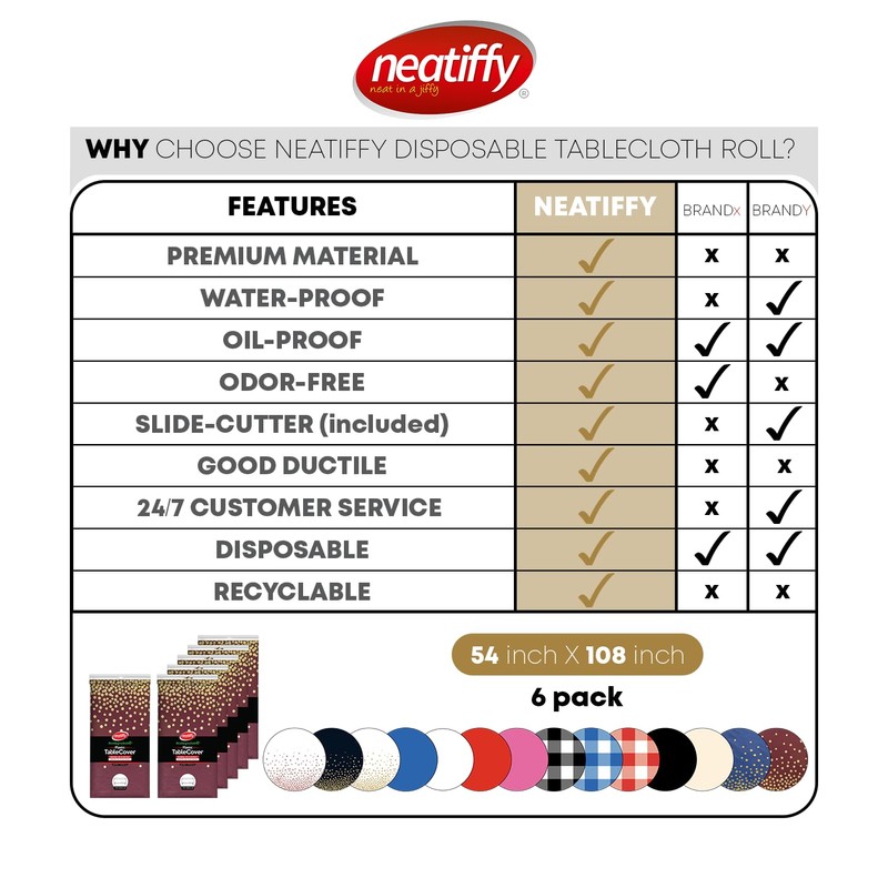 Organize amazing parties with ease. Add the Neatiffy Disposable Tablecloth to your cart TODAY!