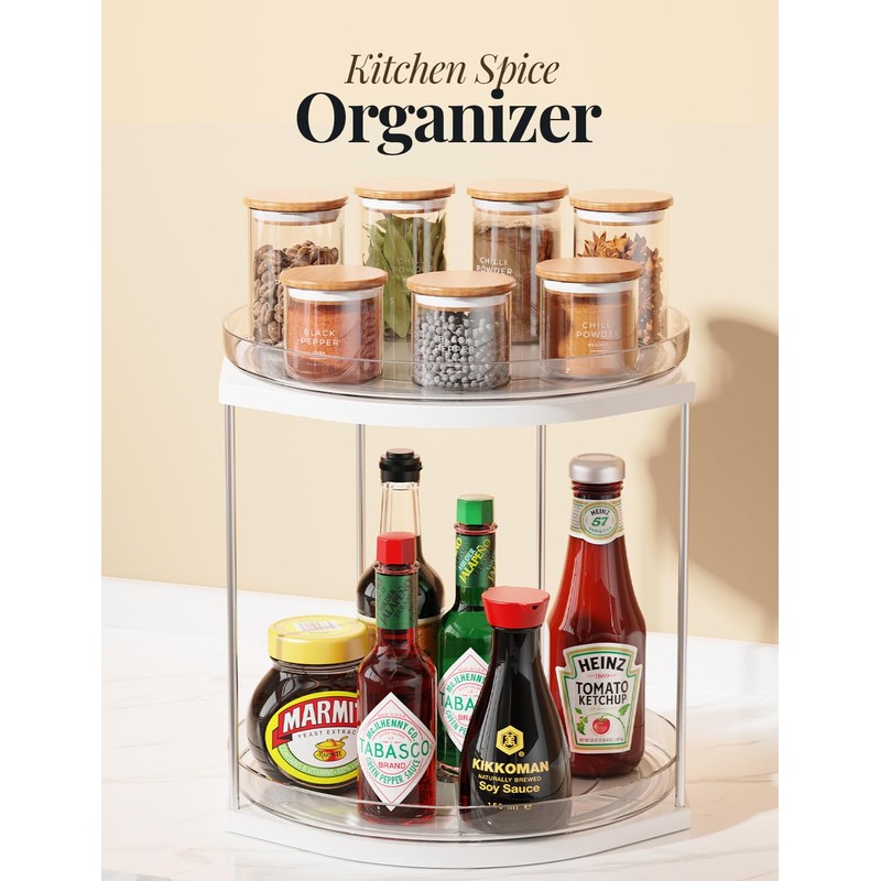 - Space-Saving & Sturdy 2-Tier Turntable C The double-layer design optimizes vertical space while ensuring stability with a non-slip base, making it perfect for cabinets, countertops, vanities, and pantry storage.