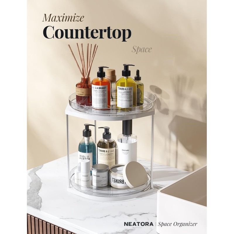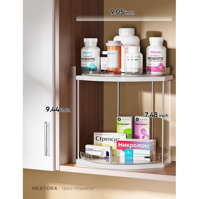 NEATORA Neatora 2 Pack 2-Tier Lazy Susan Turntable, 9.05 Rotating Acrylic Organizer for Kitchen, Pantry, Bathroom & Vanity (Spices, Makeup, Skincare)
