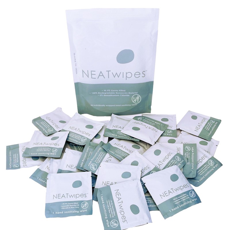 • DISPOSABLE TRAVEL SIZE WIPES: NEATwipes portable 24-count individually wrapped wipes come in a resealable bag and are perfect for on-the-go. Grab a handful for your pocket, purse, backpack or anytime you are on the go. Great for sharing with friends and customers.