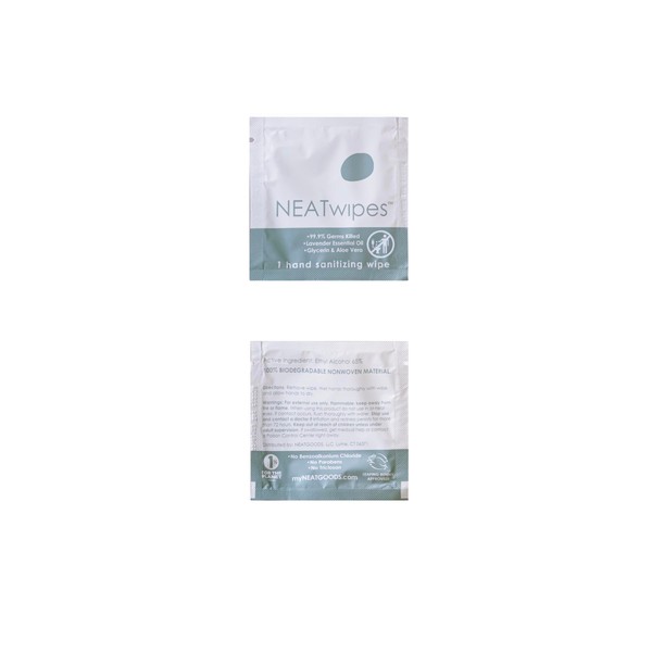 • LARGE BUT POCKET SIZE: Our individually wrapped wipes measure 6" x 7 providing for generous coverage. Each packet measures 3 x 3 making them the perfect pocket size. NEATwipes are ideal for travel, school, commuting, work or errands.