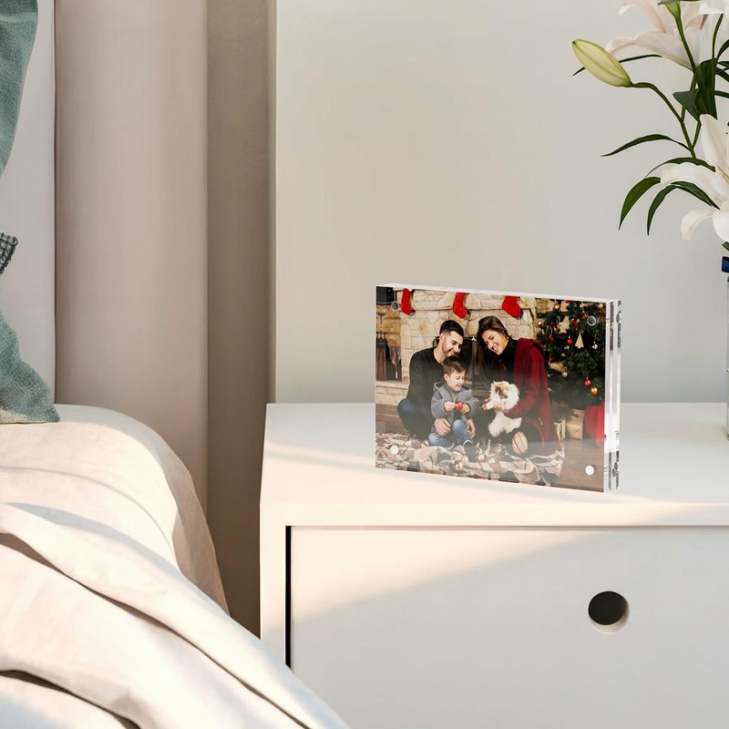• Simple Assembly and Easy Picture Changes: The assembly of our acrylic frame is straightforward, held together by two pieces of acrylic and secured with magnets at each corner. To change the picture, simply slide the blocks apart, making it a breeze to update your display.