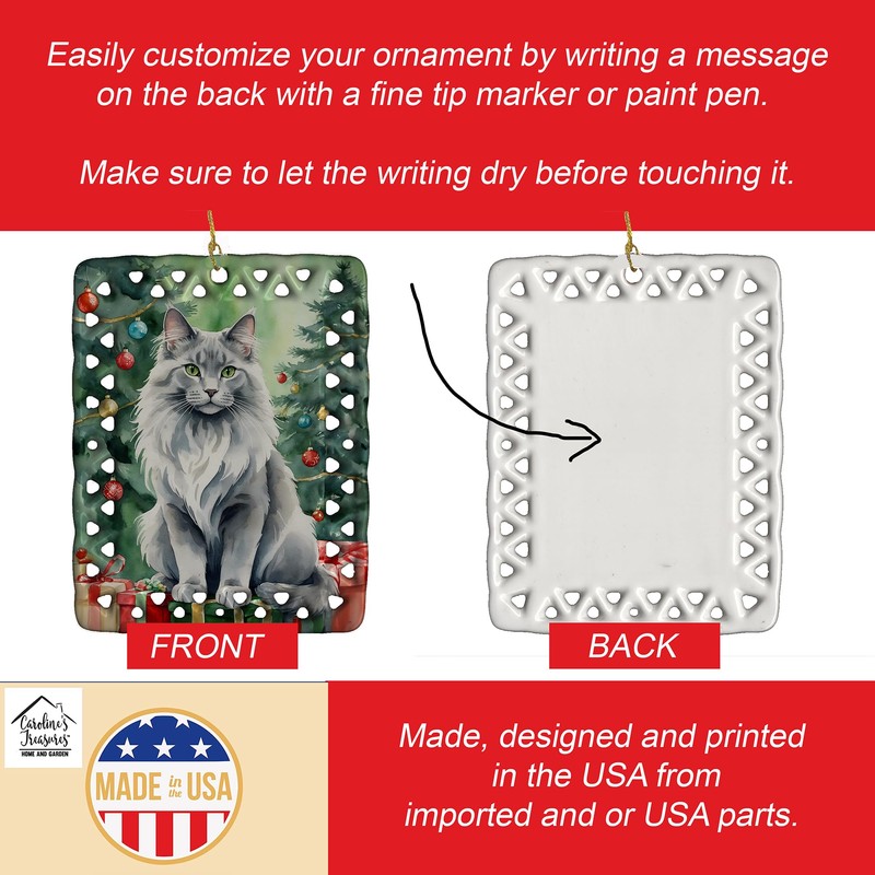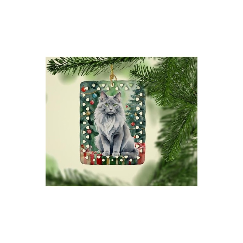 Nebelung Cat By the Christmas Tree Porcelain Ornament