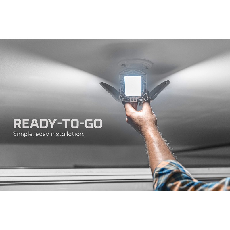 - Illumination: 6,000 lumens; 6,500 Kelvin; Protection Rating: IPX4; Beam Angle: 180°
