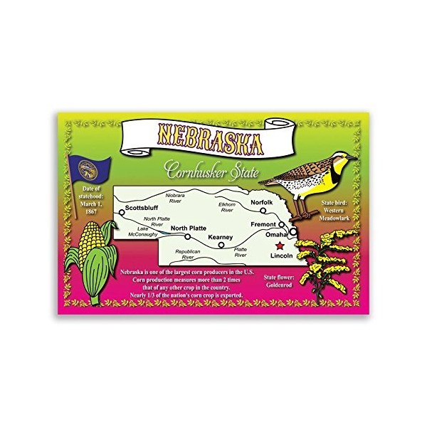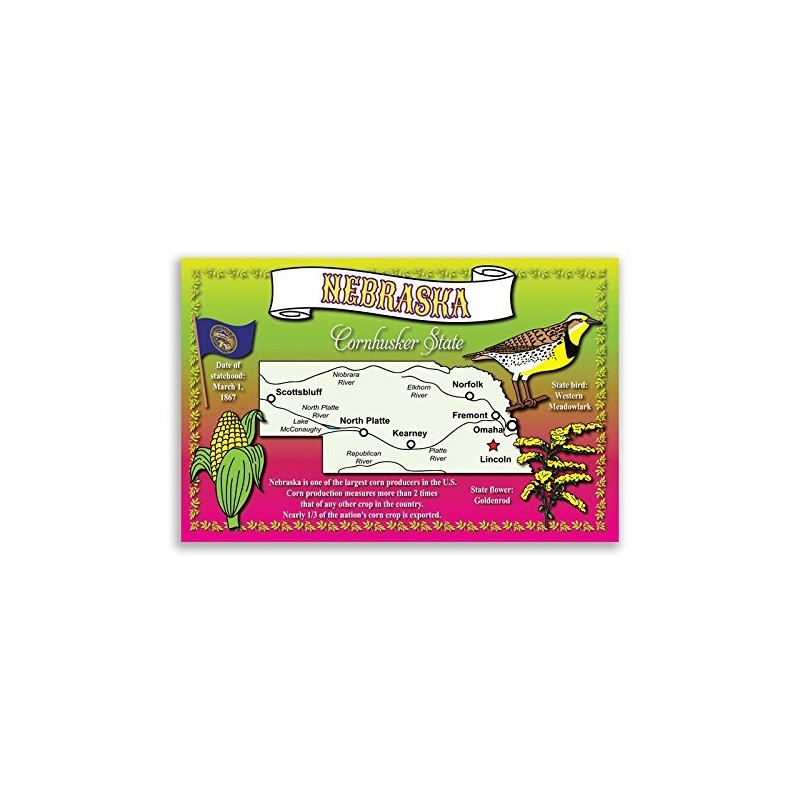 NEBRASKA STATE MAP postcard set of 20 identical postcards. Post cards with NE map and state symbols. Made in USA.