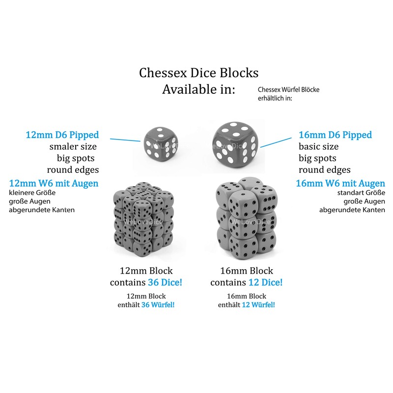Chessex set of 12 W6 cubes in 16 mm.