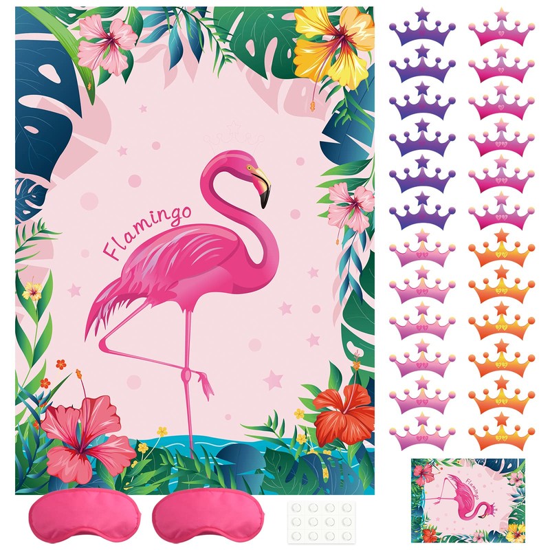 - Package included: Flamingo Poster *1,mini instruction poster *1,Flamingo crowns *24,blindfold *2,glue dot *1 sheet