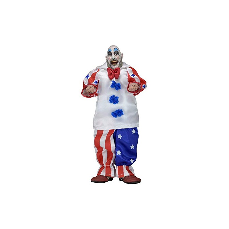 - Captain Spaulding stands 8-Inch tall and is dressed in fabric clown costume