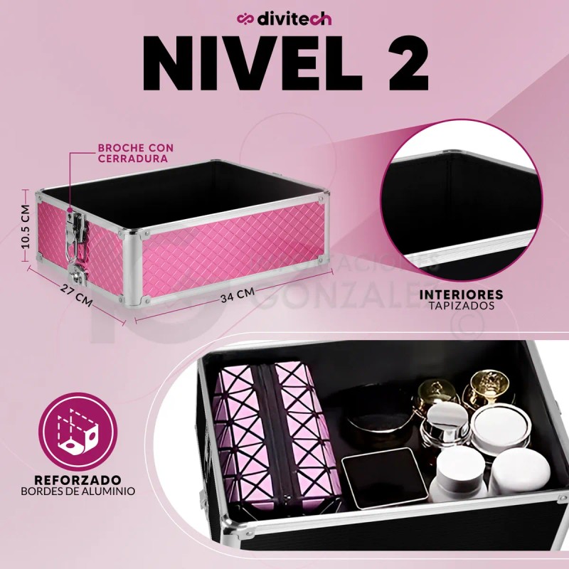 Neceser De 4 Nivel Maletín Cosmetiquera Desmontable Reforzado Con Llantas Profesional Para Maquillaje Divitech®