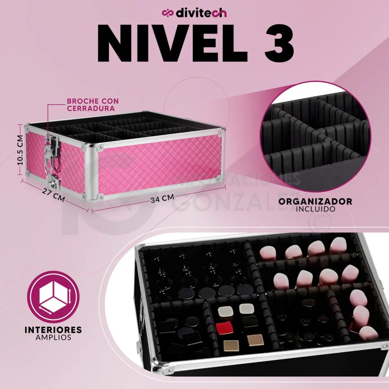 ¡Descubre la calidad y el diseño del Neceser de 4 Niveles ! Este neceser es perfecto para organizar, proteger y transportar tus cosméticos, joyería y otros artículos personales. Fabricado con materiales resistentes y de alta calidad, es la solución ideal para mantener todo en orden y en perfecto estado.