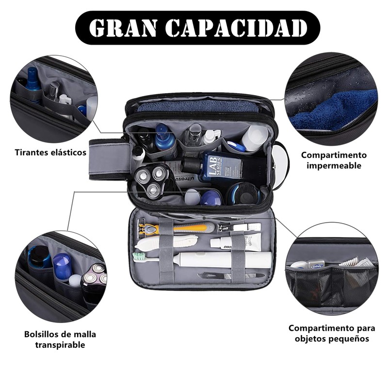 - ✈ Diseño de doble lateral con apertura total ----- Los 2 compartimentos laterales se pueden guardar planos sin necesidad de abrir el compartimento principal para buscar. Utilice las correas elásticas, los bolsillos de malla y las bolsas para organizar su cepillo de dientes, maquinilla de afeitar, recortadora eléctrica u otros objetos pequeños. En nuestros neceseres cabe de todo. Botellas y tubos de tamaño normal, kits de afeitado, cepillos de dientes, lo que se te ocurra.