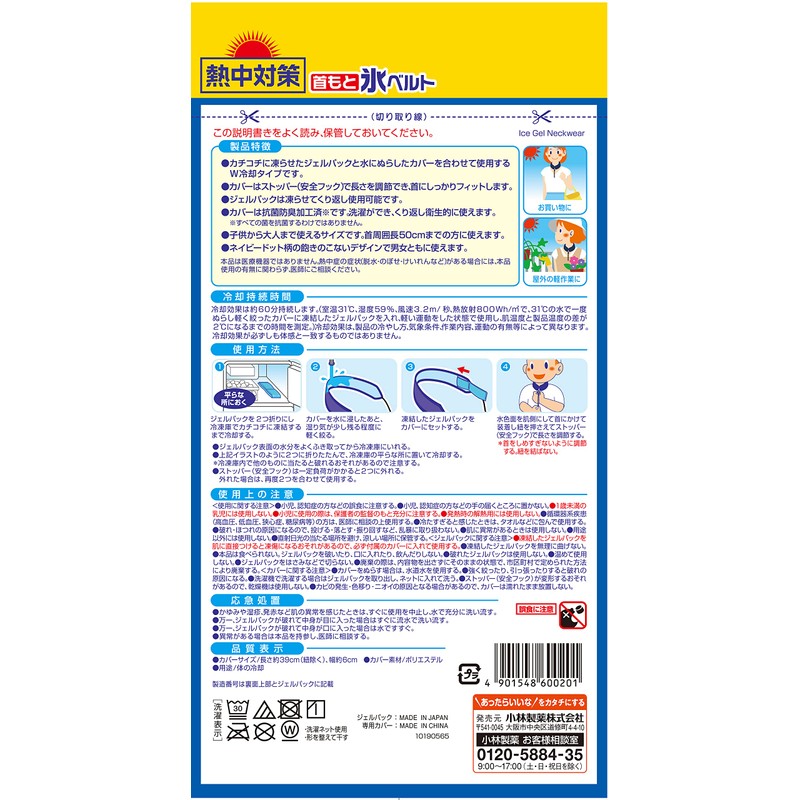 [Product Description] ● "heat protection belt under ice cooling Type" is the strength, liquid and ice cold neck the Neck of your w Cooling, you can take it with a strong neck that will cool your cooler. ● katikoti to freezing water gel packs with your sponges you can match the covers can be used with Close to skin and say the coldness of the ice, powerful in the cold. ● Cover is the stopper and the length is adjustable (with safety hook) and around your neck for a secure fit. ● In addition, antimicrobial and anti-odour treated, washing, also can be repeated and hygienic to use. ● Gel Packs can be frozen to repeated use. ● For kids to adult size (Neck circumference up to 50 cm This product is NOT a medical device. ● heatstroke symptoms (water, soft, spasms, etc.), use this product with no matter if you have please, please consult your doctor. ● [usage] ● (1) The gel packs with 2 fold in the freezer to freeze to cooling katikoti. ● 2) cover, a little left to the damp after they have been soaked in water to gently squeeze. ● 3) Freeze the gel packs to cover your set to. ● (4) Light Blue Surface to hold a string around your neck and on the skin side is a stopper and the length is adjustable (with safety hook). ● * Neck to find. Path.