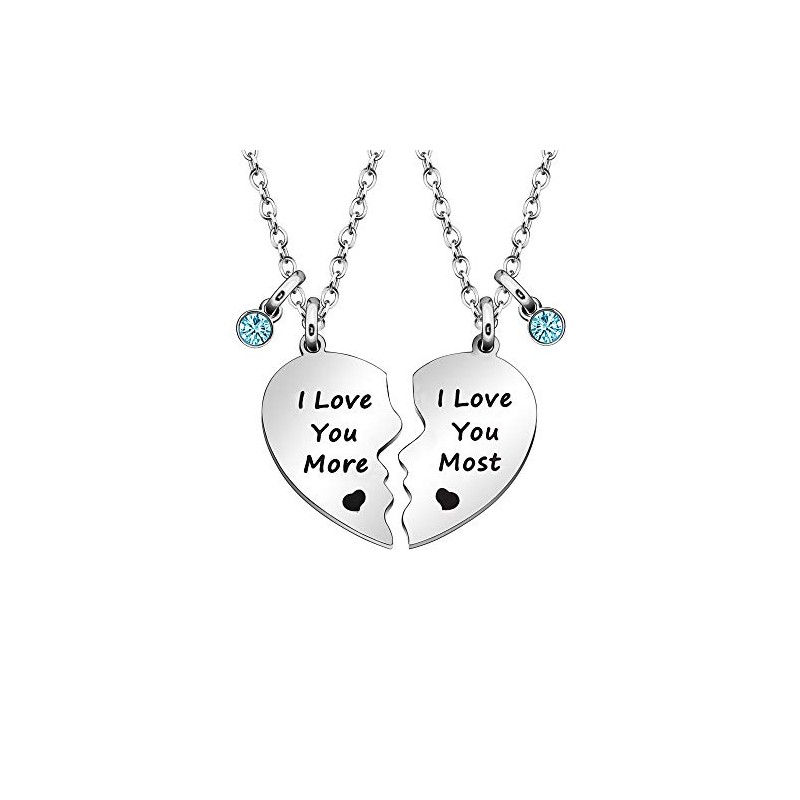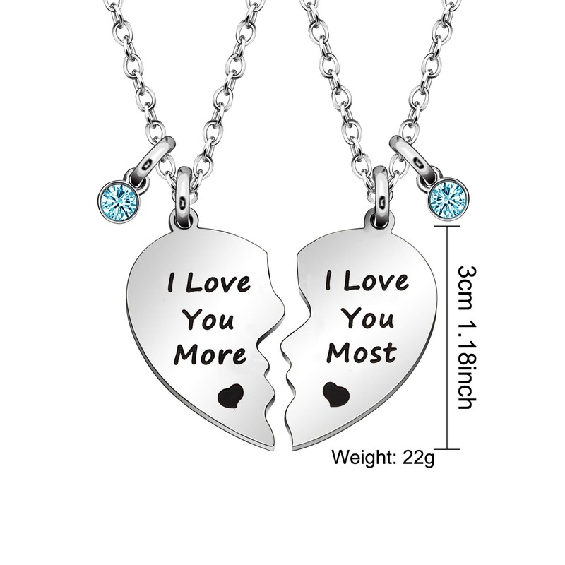 - ⚫Split heart necklace for couples lovers. "I love you more,I love you most" matching heart necklace for Women men.