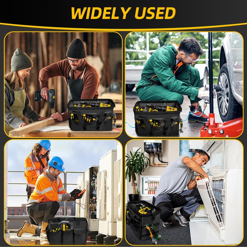 - Anti Slip Base: There are four rubber anti slip feet at the bottom, which can enhance stability and prevent accidental movement in various workplaces, including construction sites, electrical work, pipeline work, woodworking, etc. The wide opening design increases convenience, allowing you to quickly find the tools you need according to your needs.