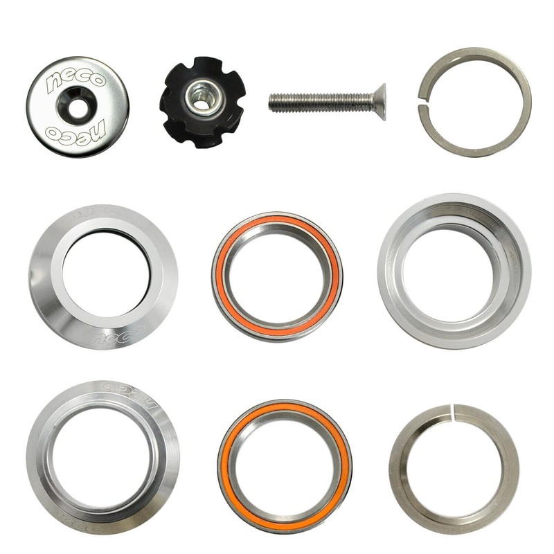 NECO 1-1/8" CNC Alloy Threadless MTB Road Headset with Top Cap, Silver, NC2861