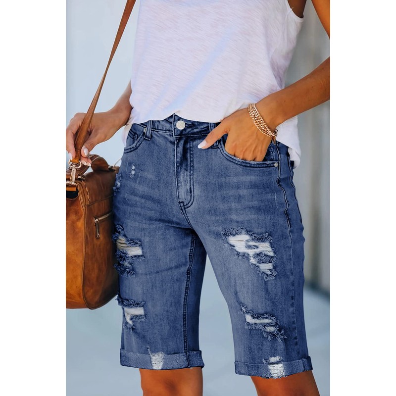 - Features: Women’s casual ripped Bermuda jean shorts,Distressed,frayed Five Points Jean shorts and rolled hem. Stretchy,breathable and elasticity etc. Front button and zipper closure. fashion and cute denim shorts is casual, and can be worn at any time in summer. summer high waisted bermuda denim shorts is very cool. casual high waist ripped destroyed shorts jeans is composed of high-quality fabrics. it is fabric is very breathable and will never go out of style.