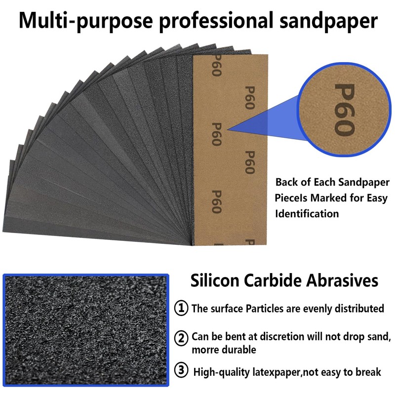 - 【Premium Quality Sand Paper】Sanding paper are made from waterproof silicon carbide, electro coated ensures the grit distributed homogeneously, tear off or crumble off whenever you use it