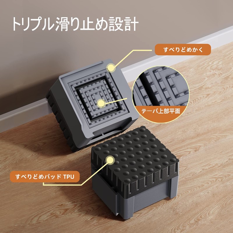 • Non-slip design: The bottom is made of non-slip material (TPU rubber), and there are dents and small protrusions on the bottom, so the furniture legs won't fall off easily. And when used in a washing machine, it will significantly reduce shaking and noise, making it stable