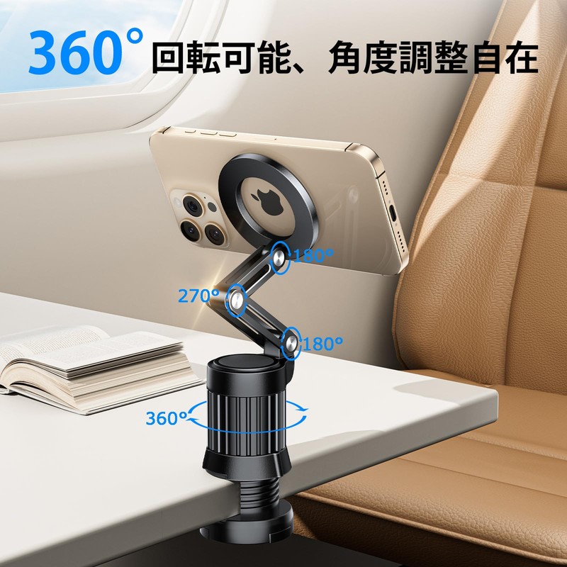nediea Smartphone Stand, Compatible with Airplanes, MagSafe, Travel, Bullet Train, Portable Holder, Tripod Included, Foldable, Magnetic Ring, 360 Degree Rotation, Tabletop Holder, Telescopic Clamp