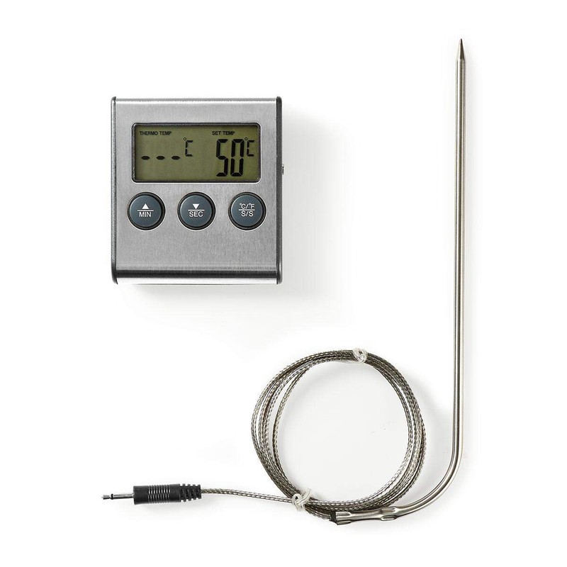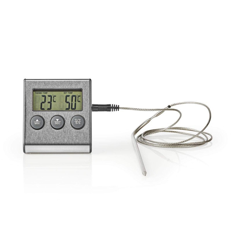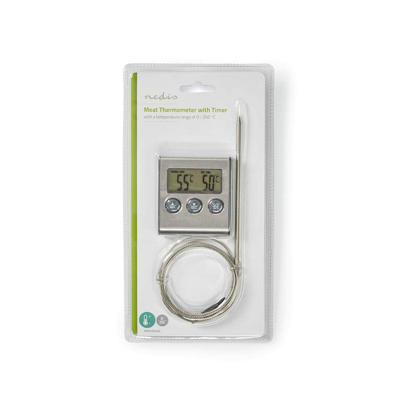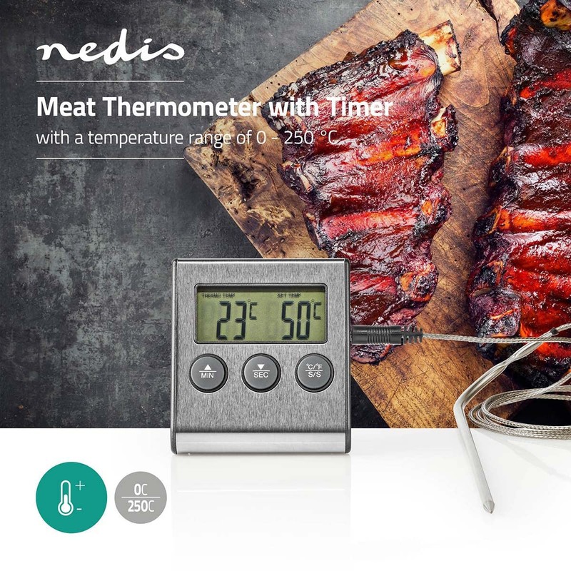 Nedis Meat Thermometer | Alarm / Timer | LCD Display | 0-250°C | Black/Silver Black/Silver 65 mm