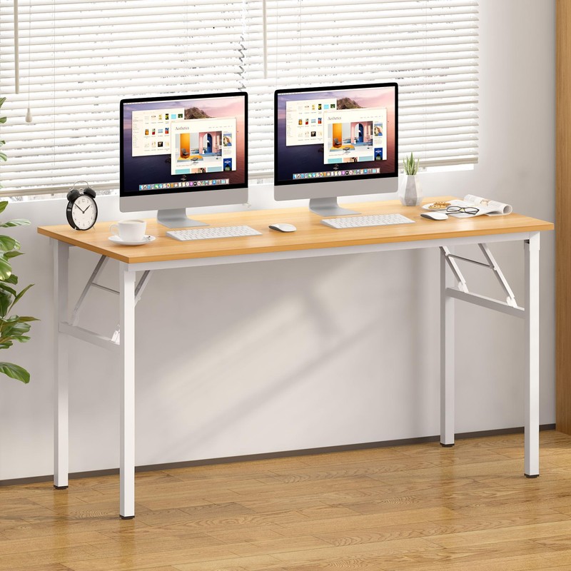 Need Home Office Desk Large Computer Desk 60 inch Sturdy Table Foldable Desk Gaming Computer Table No Assembly Required, Teak&White Frame AC5BW(152.4 * 60)