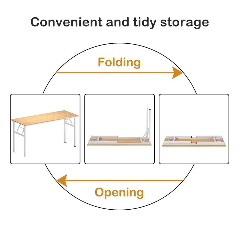 • HIGH QUALITY - This modern sturdy folding writing table frame is built with high-strength, thick tubing steel that is powder coated for a perfect finish. And the fold up desk top surface is 3/4 inch thick, high resistance on scratch & friction.Net weight about 37.24lbs, Gross weight about 42.9lbs.