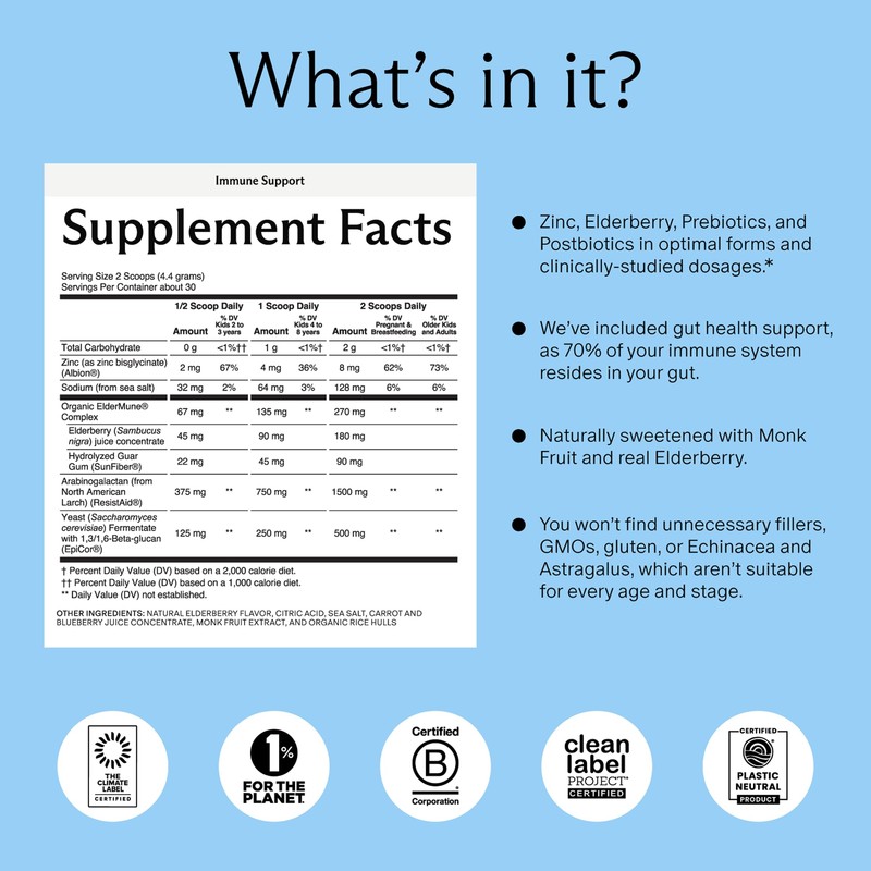 - TRUSTED BY MOMS AND HEALTH PRACTITIONERS: our elderberry immune support is third-party tested. As a B Corp, 1% for the Planet, and Climate Neutral Company, we prioritize your health and the planet.