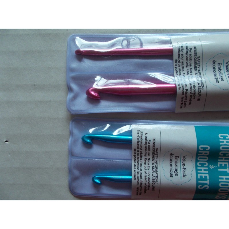 Needle Crafters aluminum crochet hooks/needles two sets of 2 double hooks (8 hooks total) sizes 2, 3, 4, 4, 5, 6, 7 and 8 5.5" long new made in China, imported by Multi Crafts (Canada) If you are not completely happy with the purchase or transaction, please email me so that we can work it out to our mutual satisfaction. |