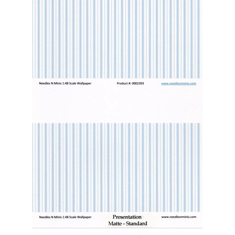 Needles N Minis 1:48, 1/4" Scale Dollhouse Miniature Wallpaper Blue Stripe 2 ...
