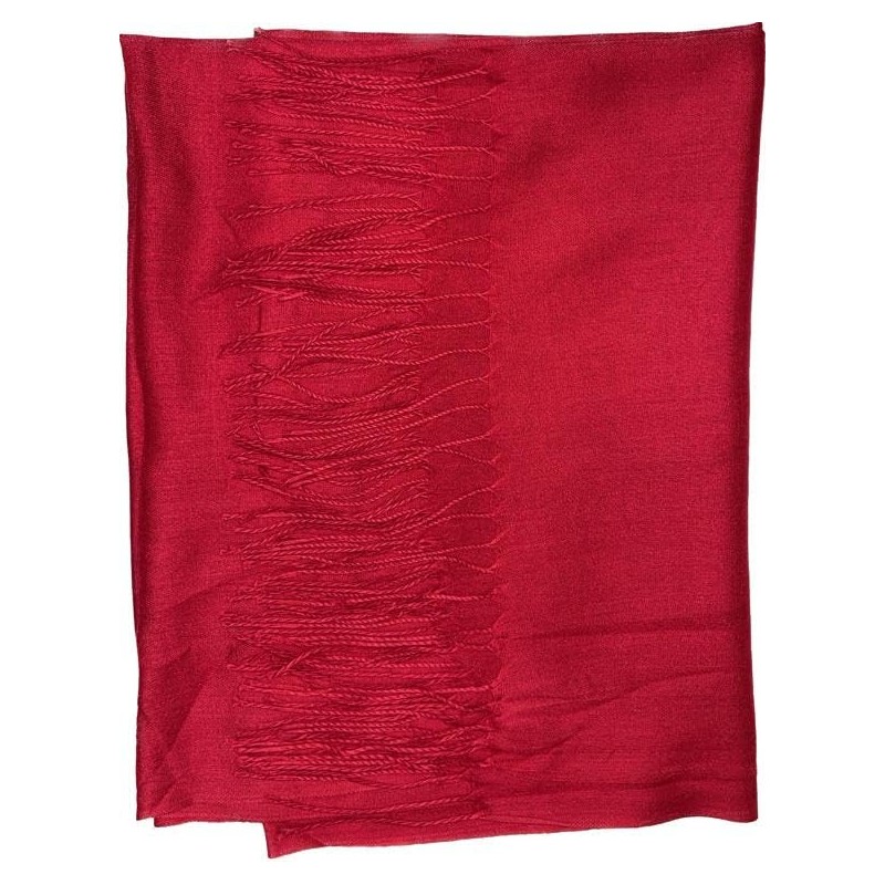 Needs & Wants® Ladies Light Weight Plain Solid Colors Fringe Detail Viscose Polyester Faux Pashmina Scarves (Red)