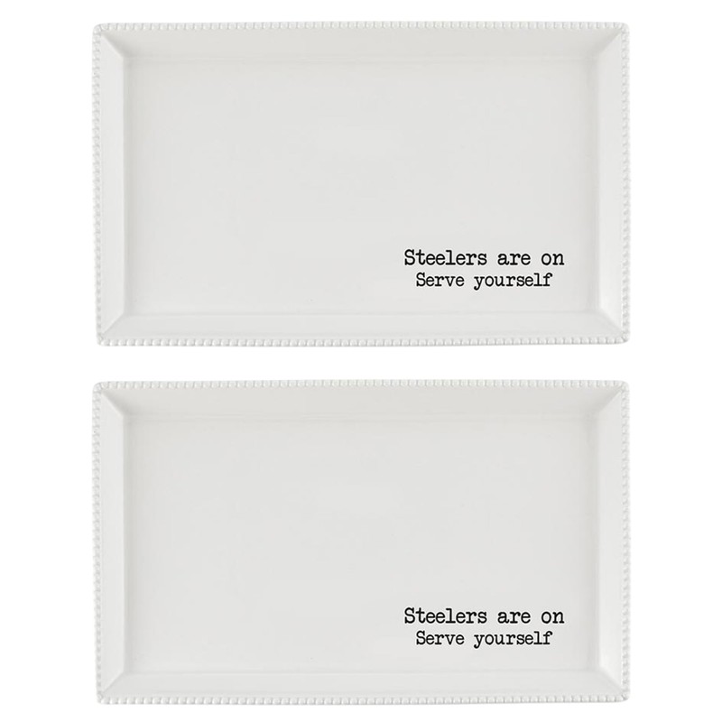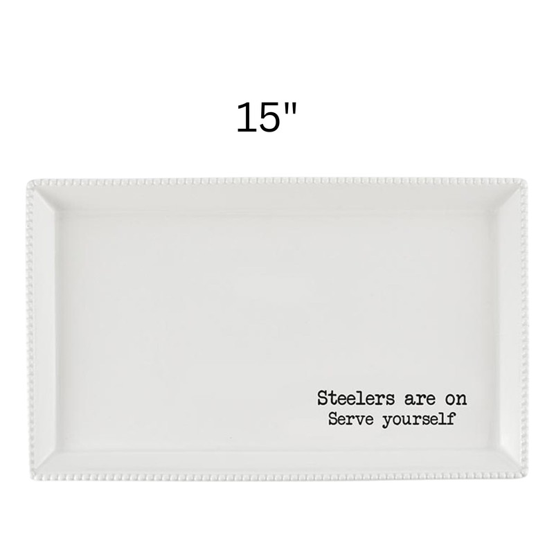 Needzo Football-Themed Ceramic Serving Platter – 'Steeler on, Serve yourself', 15x9 Inches, Game Night Essentials, Pack of 2