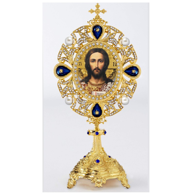 Needzo Jesus Christ Icon Pantocrator Monstrance Reliquary Icon Shrine with Cr...