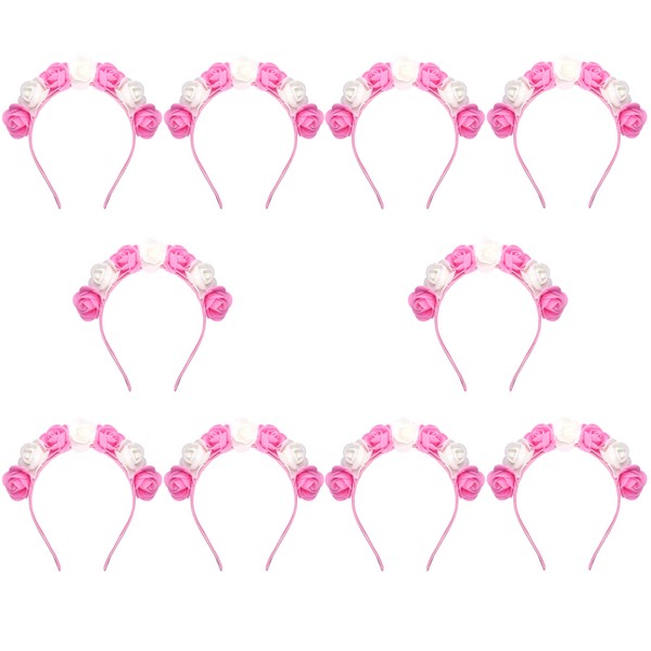 Needzo Pink and White Flower Crown Headband, Elegant Boho Accessory for Weddings, Concerts, and Festivals, One Size Fits Most, (Pack of 10)