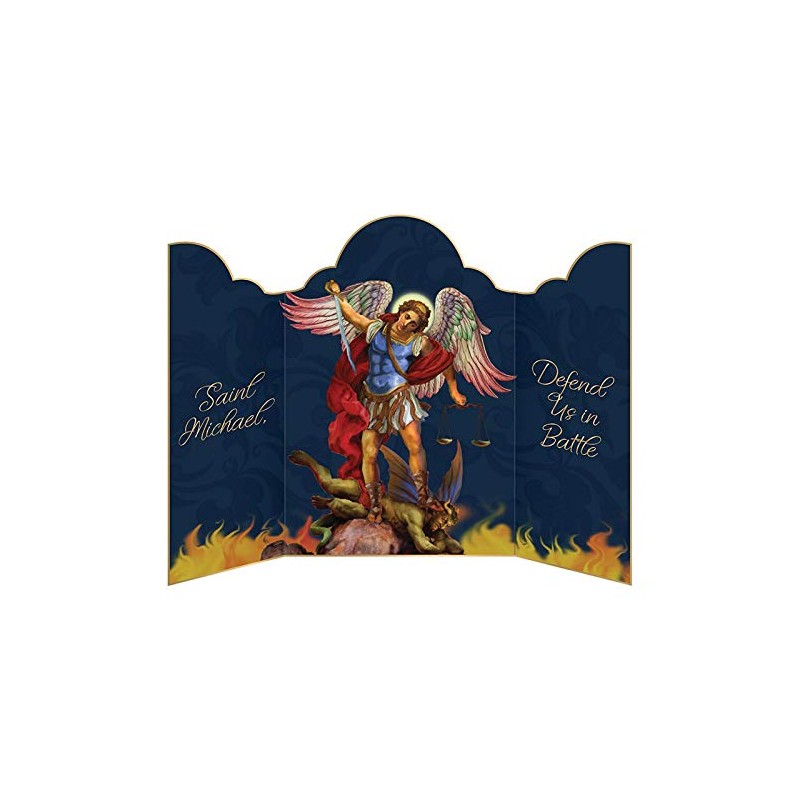 - Saint Michael the Archangel, Pray for Us tri-folding greeting card made of high-quality card stock. Card is 9.5 inches wide and 7 inches tall