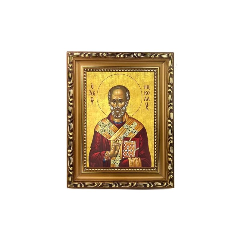 Needzo Saint Nicholas Icon Gold Framed, Byzantine Greek Orthodox Icon Wall Ha...