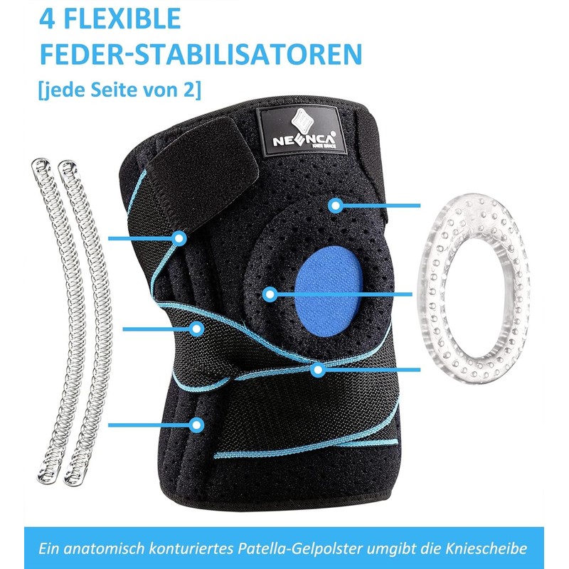 - NEENCA KNEE SUPPORT TECHNOLOGY: Ein anatomisch geformtes Gelpolster umschließt die Kniescheibe, doppelseitige Metallfederstabilisatoren (4 Federn) passen sich fest an das Kniegelenk an. Dieses spezielle Funktionselement stärkt den Seitenhalt und erhält die Gelenkstabilität. Verteilt effektiv den Druck und hält das Knie warm.