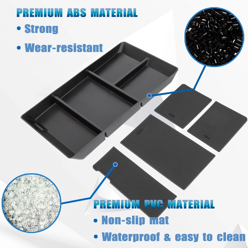• Premium Materials: The storage organizer is made from well-made quality ABS plastic to ensure durability and a long lifespan, while coming with anti-slip rubber pads which keep things from sliding around and rattling inside