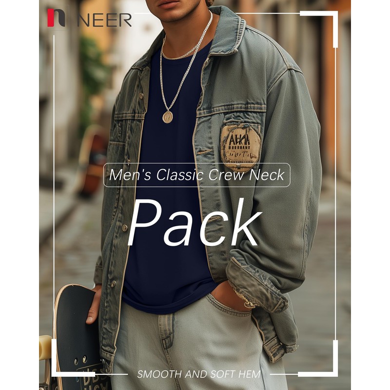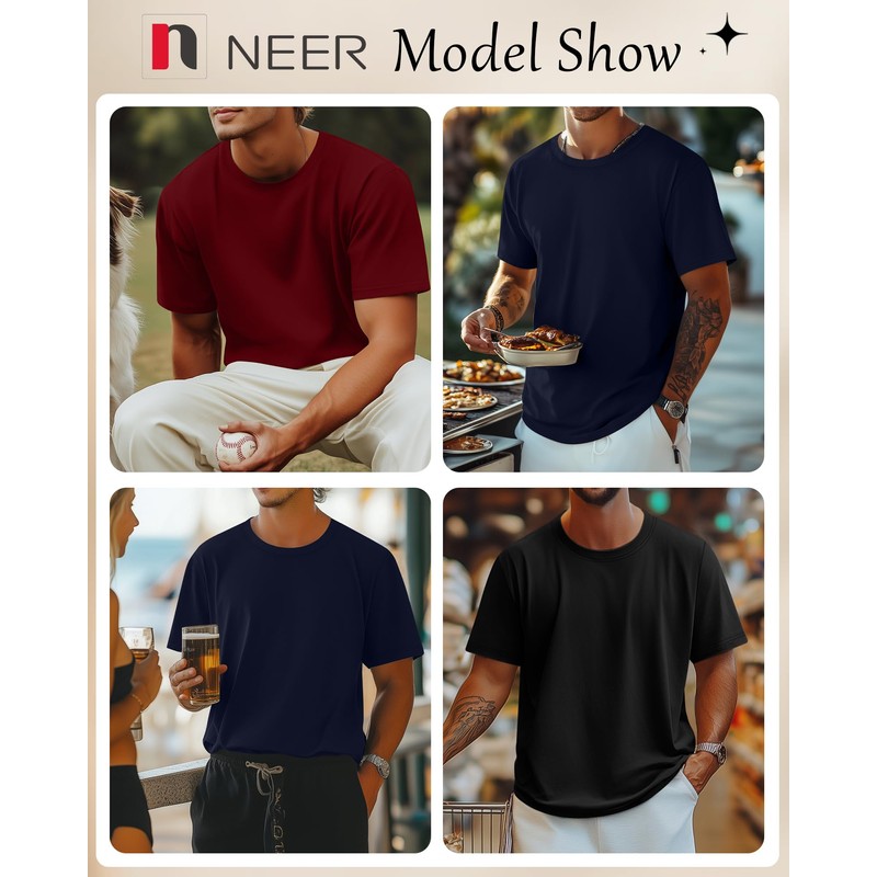 Neer 3 Pack Men's Round Neck T Shirts 95% Cotton M-7xl Big Tall Regular Tees Soft Short Sleeve 2025 Summer Basic Tops(Black, Navy Blue, Wine Red,Medium)