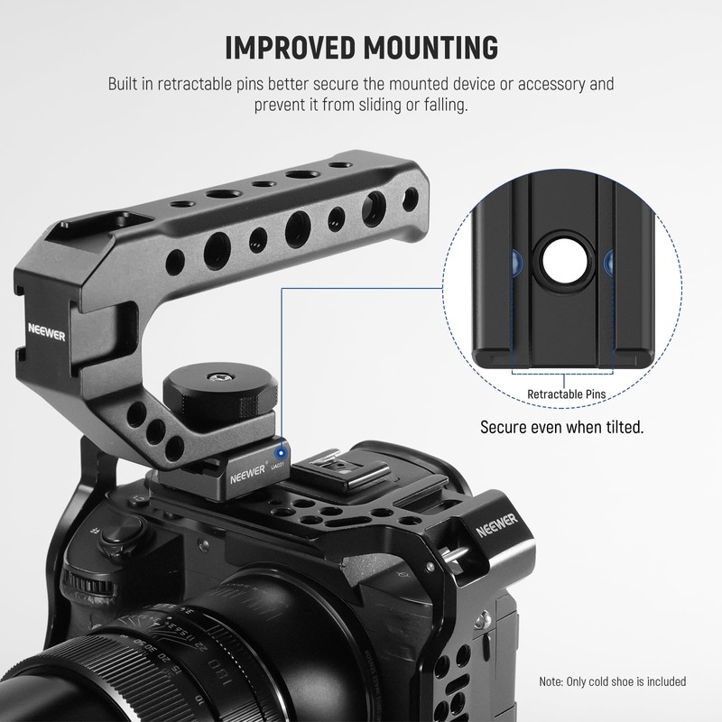 Connect to speedlite flashes, microphones, field monitors, and other hot shoe accessories with this standard cold shoe mount, and can be attached to cages, handles and more via its top 1/4" mounting screw.