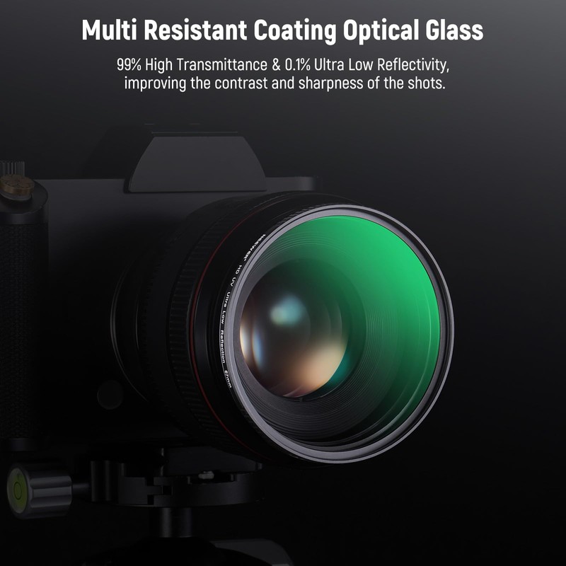 - 【99% High Transmittance & 0.1% Ultra Low Reflectivity】 This camera lens UV filter with premium ultra clear optical glass provides up to 99% light transmittance and low to 0.1% reflectivity, improving the contrast and sharpness of the shots