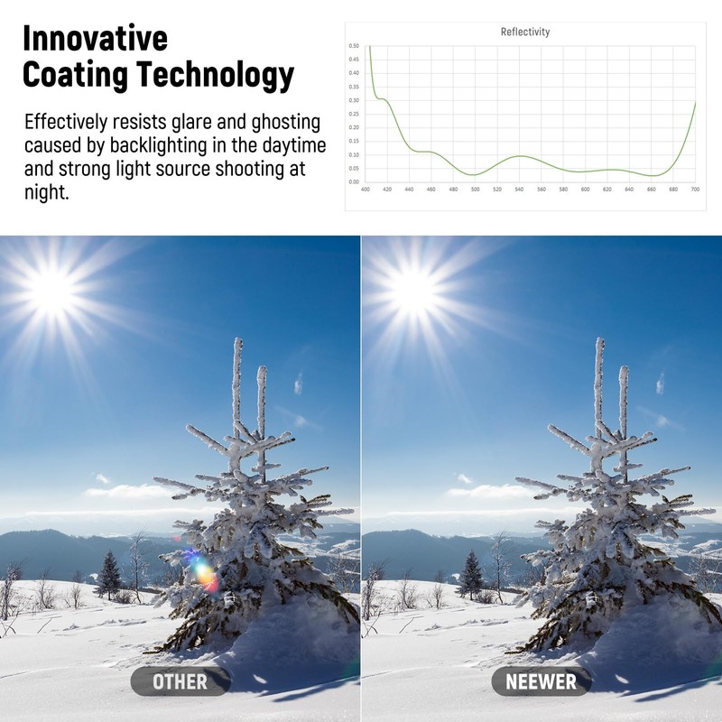- 【Lens Protection and Lifelike Color】 NEEWER 67mm Ultra Low Reflectivity UV Lens Filter protects your lens from dust, scratches, fingerprints, and bumps. Crafted with innovative coating technology, it effectively resists glare and ghosting caused by backlighting in the daytime and strong light source shooting at night, to capture images and footage with stunning clarity and true to life colors