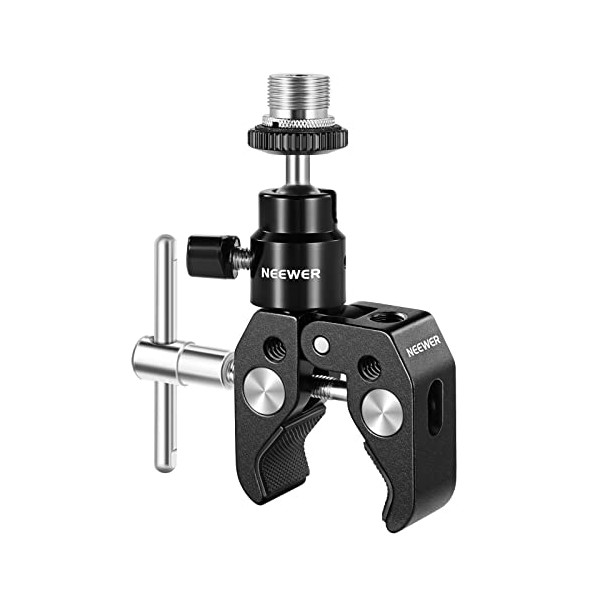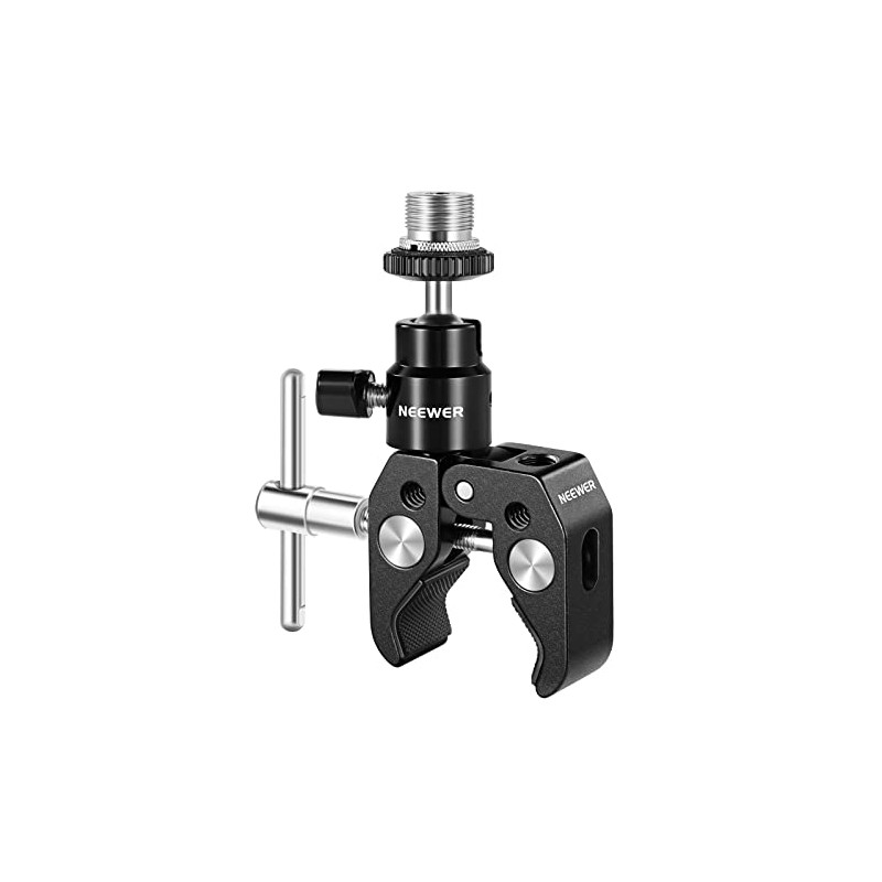 NEEWER Crab Clamp Articulated Mini Ball Head, Super Clamp Mic Mount with 1/4" to 5/8" Thread, Compatible with SmallRig Camera Cage and Microphones, Bearing up to 3.3lb/1.5kg (ST48)