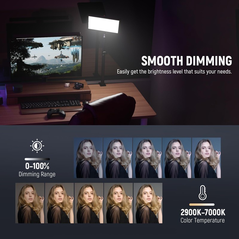 - 【Wide Color Tones】 Effortlessly match ambient lights and achieve a smooth skin complexion with the 0-100% dimming range and 2900K-7000K tunable color temperature. The super high CRI 98+ ratings ensure faithful color reproduction for vibrant and accurate colors in your content
