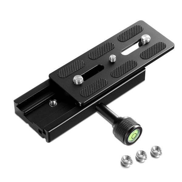 NEEWER Quick Release Plate with Clamp Adapter Set, 120mm QR Plate with Clamp, 3/8"&1/4" Screw, Bubble Level, 3/8” to 1/4” Screw Adapter, Compatible with Arca Swiss Tripod Monopod Ball Head