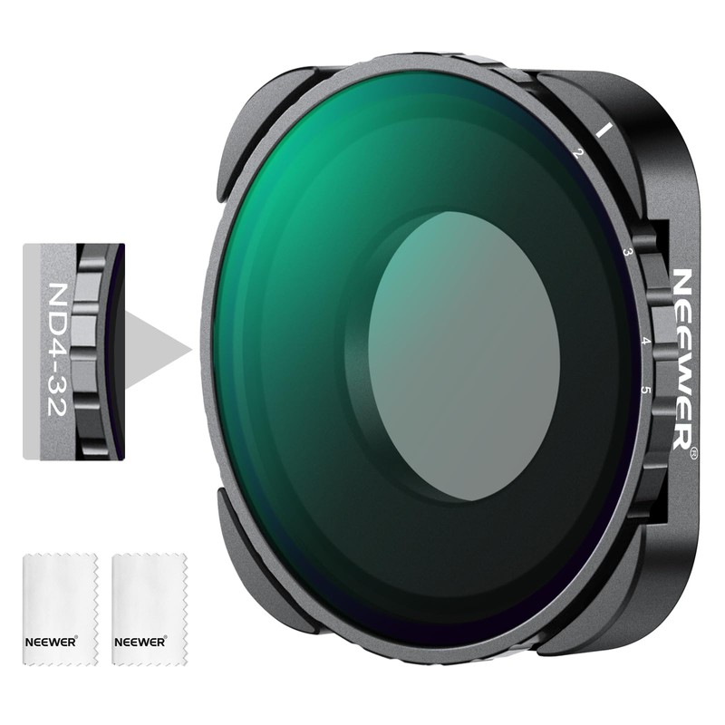 NEEWER Variable ND Filter Compatible with GoPro 13 12 11 10 9, ND4-32 2-5 Stop, Screw-On Neutral Density Filter with Multi-Coated HD Optic Glass, Slim Frame, 2 Cleaning Cloths, No X Pattern