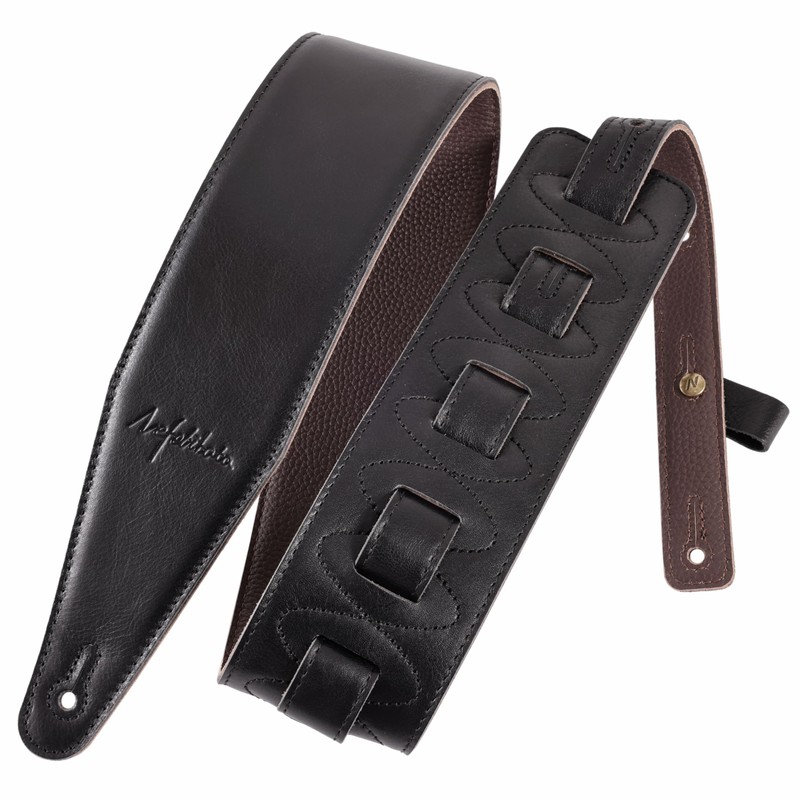 Nefelibata 3" Wide Guitar Strap, Adjustable Full Grain Leather Guitar Straps with Foam Padding for Bass, Electric and Acoustic Guitars