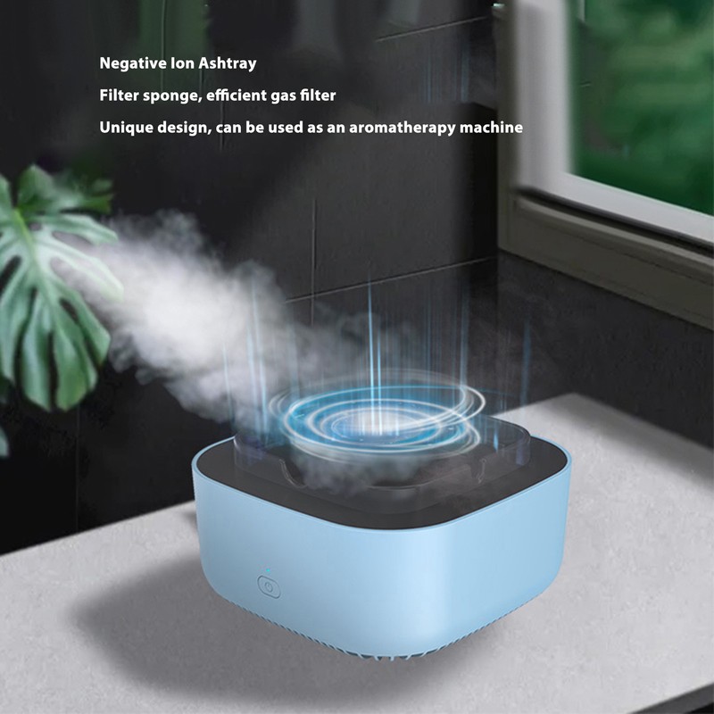 Negative Ion Ashtray Multifunctional Portable Air Freshener Smokeless Smart Ashtray for Home Car Office Blue