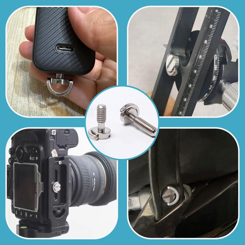 - The 1/4 inch camera screw set has precisely cut threads that are easy to tight. So you can connect devices quickly and safely without loosening the screws.