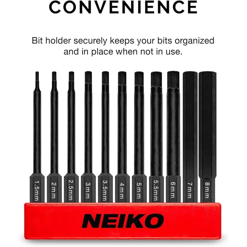 NEIKO 01148A Hex Allen Power Bit Set, 11-Piece Metric Sizes Bit,