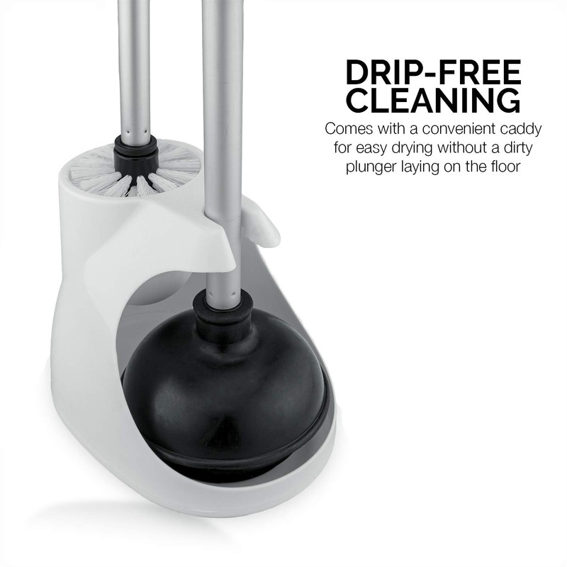 • PATENTED DESIGN TOILET BRUSH AND PLUNGER SET | Unique Toilet Plunger with 4-step Graduated Design Combined with a Pliable Rubber Suction Cup Forms an Ultra-Tight Seal on Most Toilets, Round and Elongated, Old as Well as New